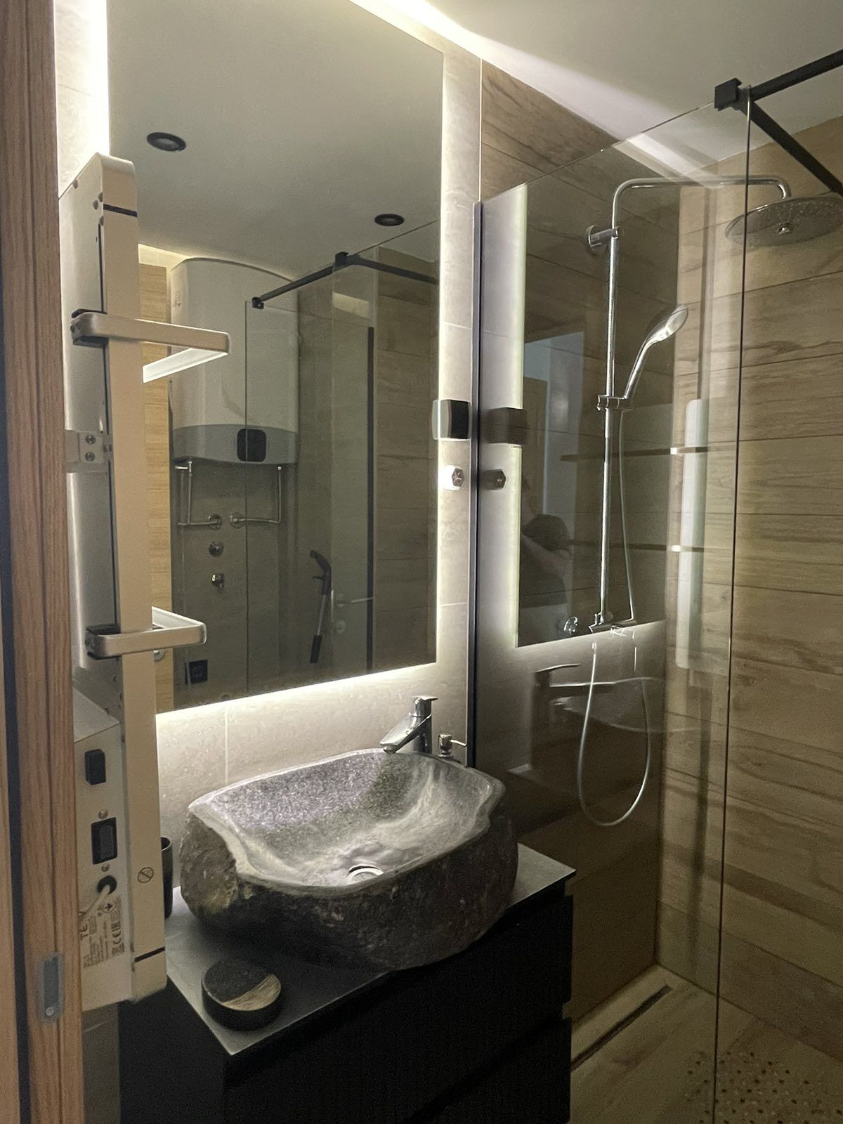 Zgrada poseduje spa centar, tursko kupatilo ,saunu , spoljni bazen, lift Apartman je vrlo pažljivo dizajniran i opremljen, sa vrlo kvalitetnim nameštajem i elektronskim uređajima, kako bismo zadovolji potrebe današnjeg modernog gosta.