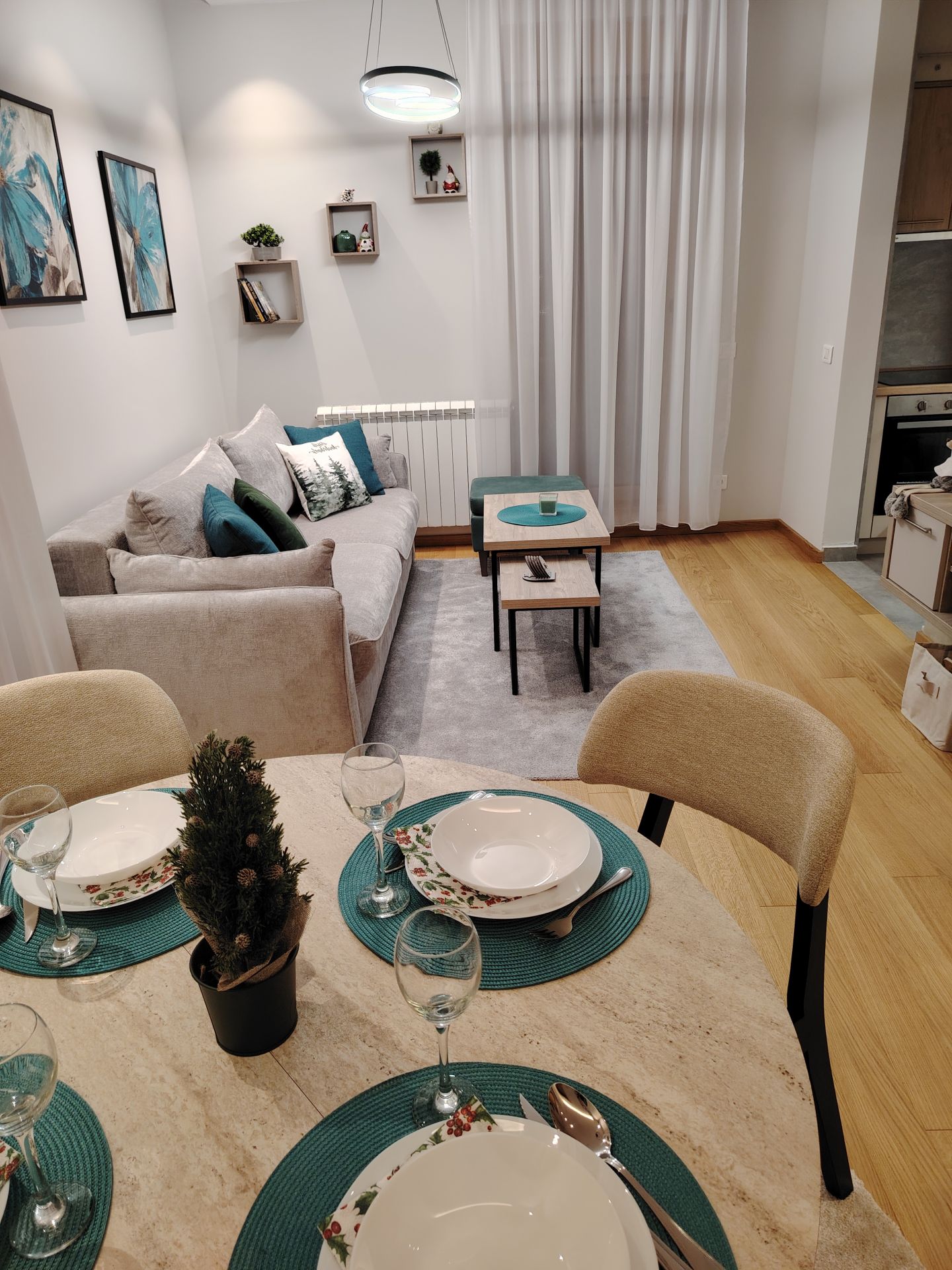 Sastoji se od dnevnog boravka, kuhinje, ima odvojenu spavaću sobu, kupatilo i dve terase sa kojih se pruža magičan pogled. Kupatilo i kuhinja su u potpunosti opremljeni a poseduje 2 smart tv-a i obezbeđen Wi-Fi.