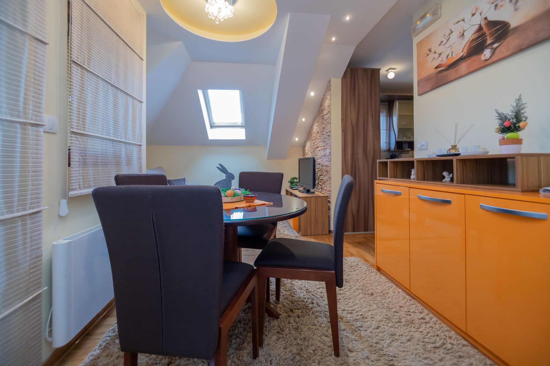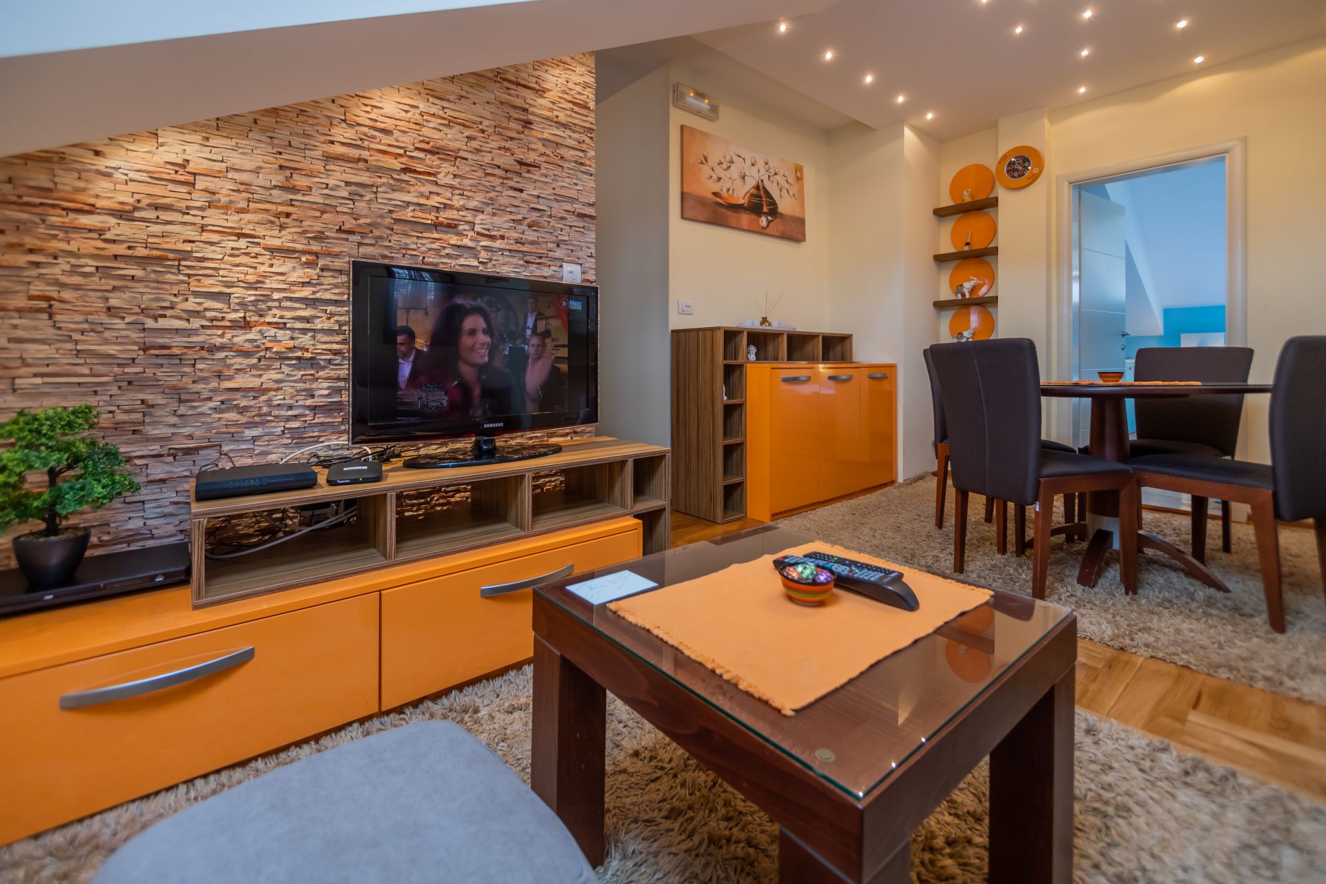 Apartman je luksuzno opremljen sa svom opremom da se osećate kao kod svoje kuće (frizder, ploča za kuvanje, rerna, sudomasina, vešmasina, klima i kompletno posuđe). U dnevnom boravku je ugaona garnitura koja se može rasklopiti u ležaj za 2 osobe, dok spavaća soba poseduje prostran francuski ležaj. U celom apartmanu je besplatan wi-fi kao i dva TV.
