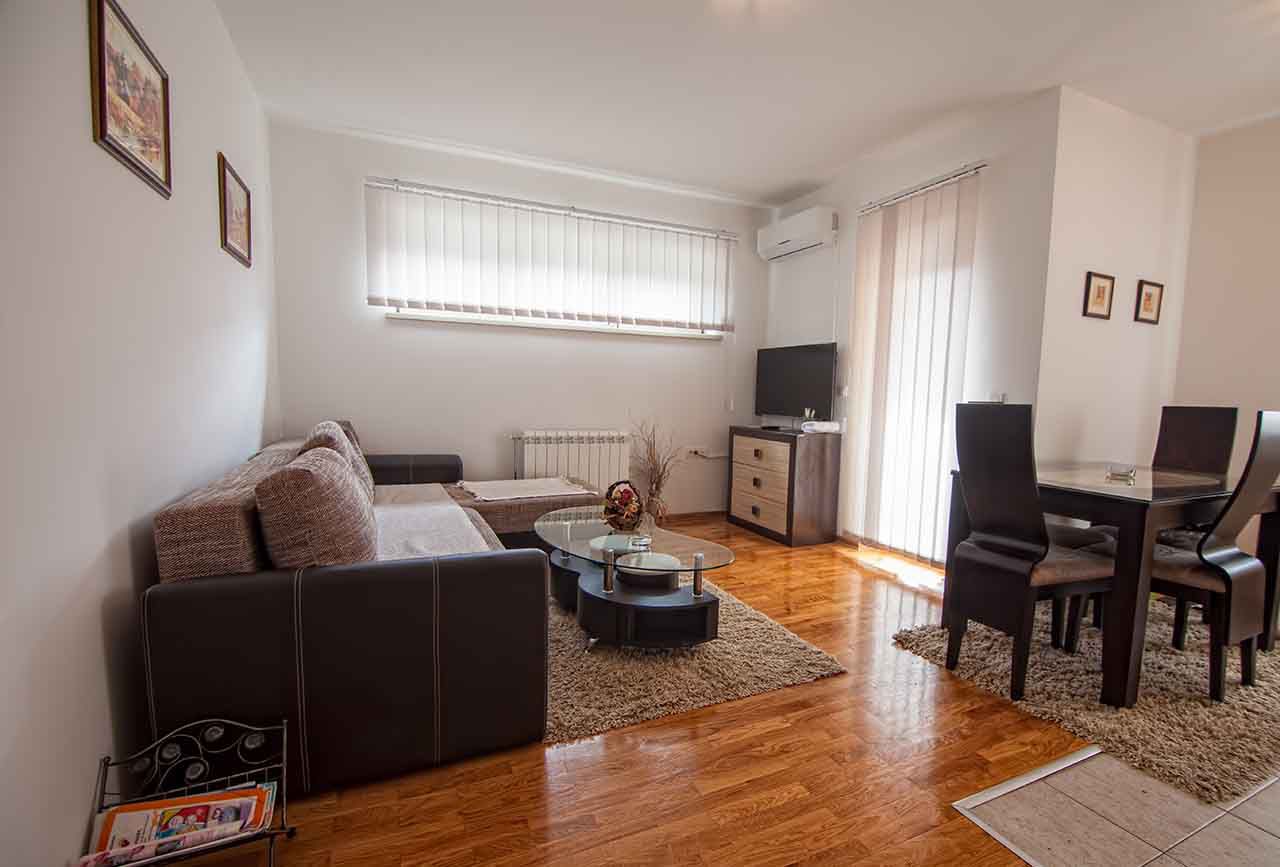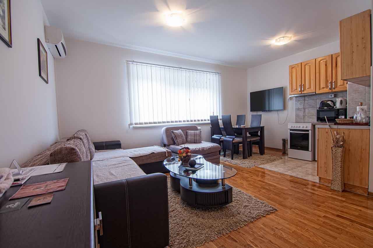Svaki apartman pored nezavisnog sistema grejanja poseduje i klima uređaj, tv prijemnik u dnevnom boravku i u spavaćoj sobi, besplatan brzi internet, frižider, šporet, kompletan set posuđa i pribora za jelo, fen za kosu i set za ličnu higijenu u kupatilu.