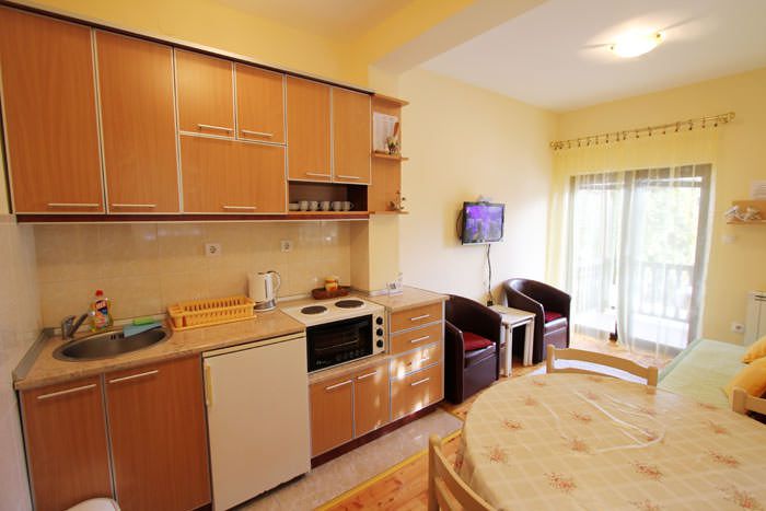 Dupleks apartman sadrži prizemlje i sprat. U prizemlju apartmana se nalazi kompletno opremljena kuhinja , dnevna soba, toalet i terasa sa dvorištem. Dve spavaće sobe sa kupatilom se nalaze na spratu apartmana. Pogodan je za cetiri do šest osoba.