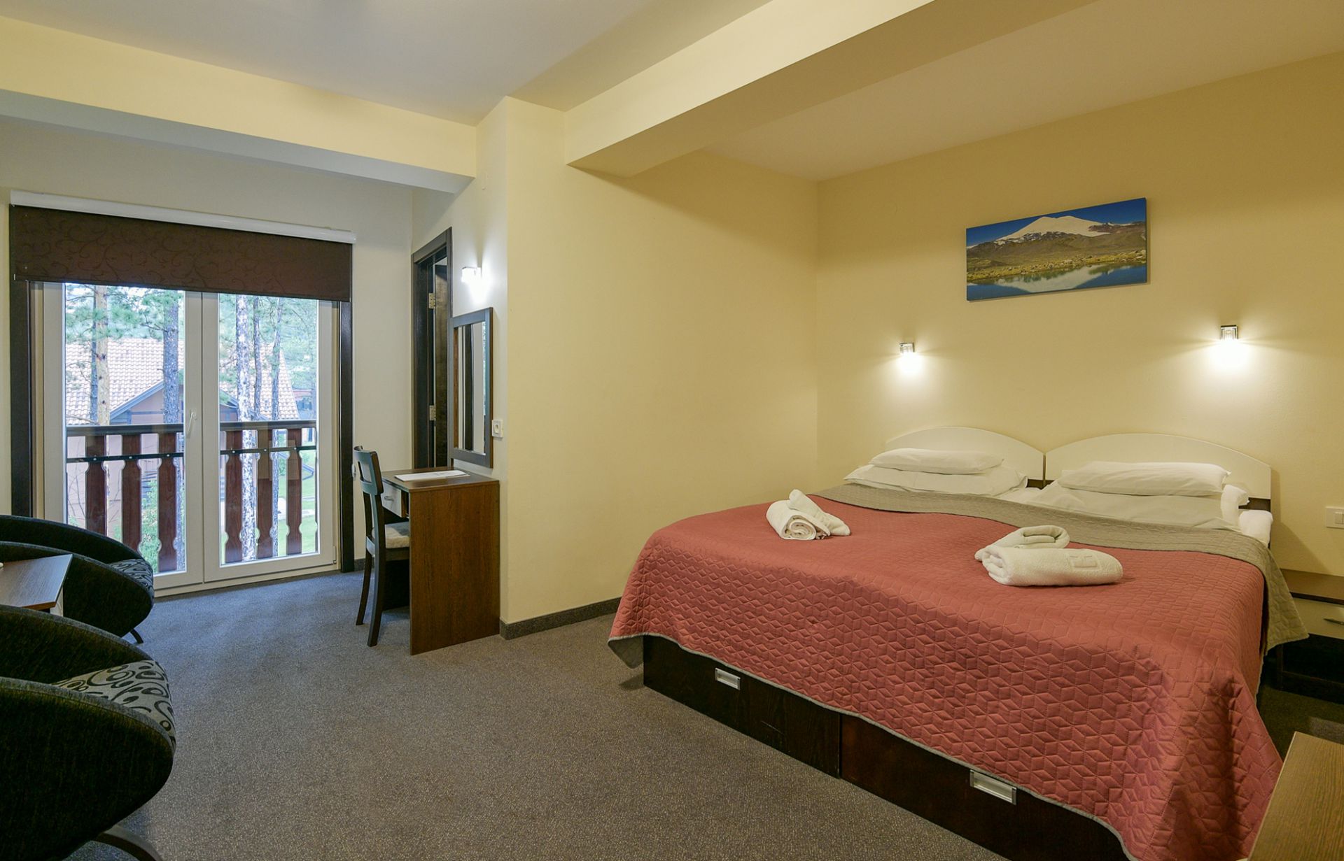 Objekat se sastoji iz suterenske i 3 nadzemne etaže povezane liftom. Raspolaže sa 19 smeštajnih jedinica, 12 soba i 7 apartmana, ukupnog kapaciteta 54 ležaja. Sve sobe i apartmani su moderno opremljeni, i poseduju kablovsku televiziju, bežični internet, mini bar. Pored smeštaja nudimo i uslugu doručka koja je na bazi izuzetno bogatog švedskog stola. Gostima je na raspolaganju kafe bar, prelepa letnja bašta, besplatno korišćenje zatvorene parking garaže, otvorenog parkinga, fitnes centra i dečje igraonice. Kompletan objekat je obezbeđen video nadzorom.