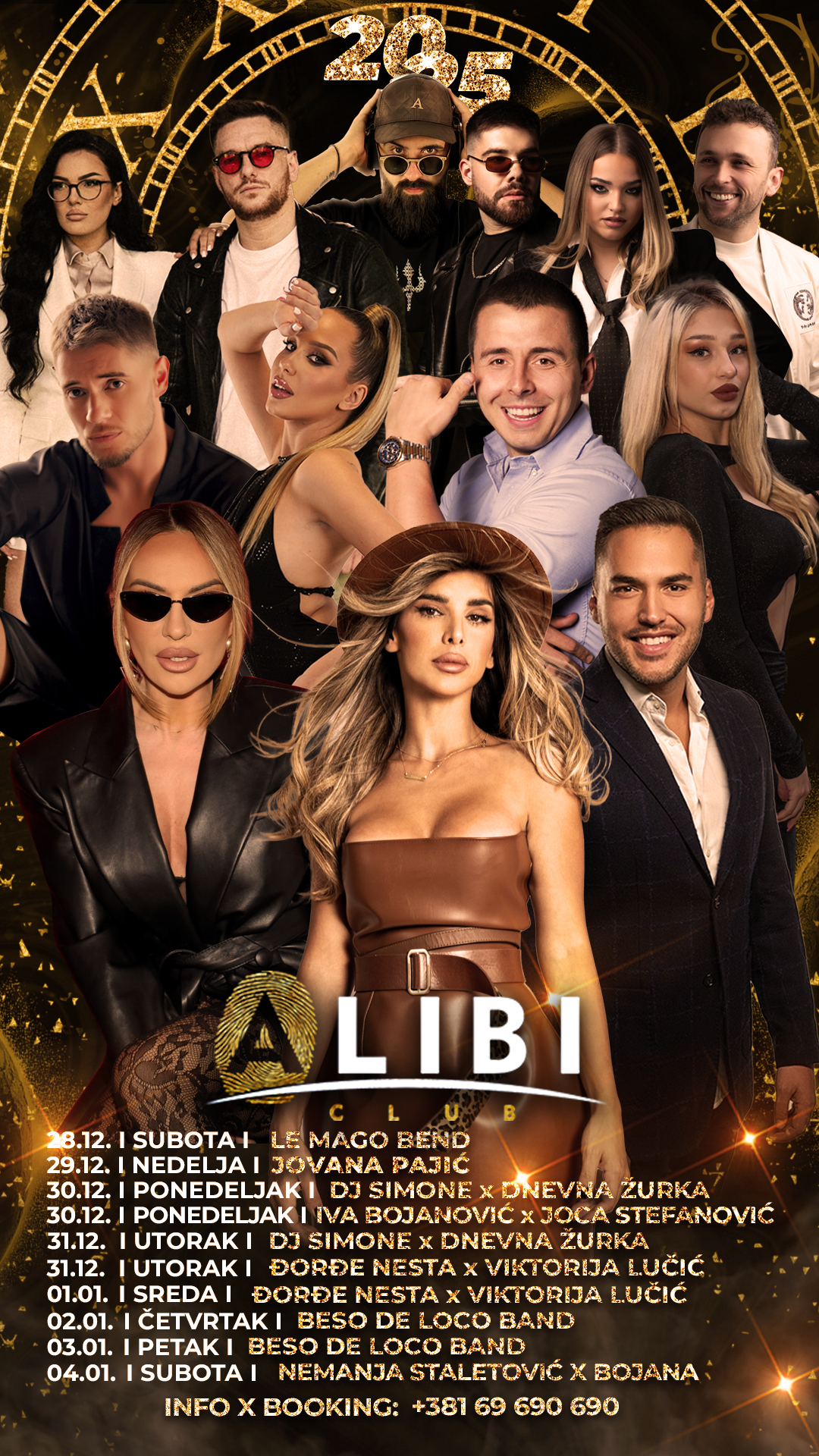 Program za ovu godinu: Subota, 28/12 – Le Mago Bend Nedelja, 29/12 – Jovana Pajić Ponedeljak 30/12 – Iva Bojanović i Joca Stefanović Utorak 31/12 – Dnevna žurka x DJ Simone Utorak 31/12 – Doček Nove godine, Đorđe Nesta i Viktorija Lučić sa bendom Sreda 01/01 – Repriza Nove godine, Đorđe Nesta i Viktorija Lučić sa bendom Četvrtak 02/01 – Beso de Loco Band Petak 03/01 – Beso de Loco Band Subota 04/01 – Nemanja Staletović i Bojana Zdravković
