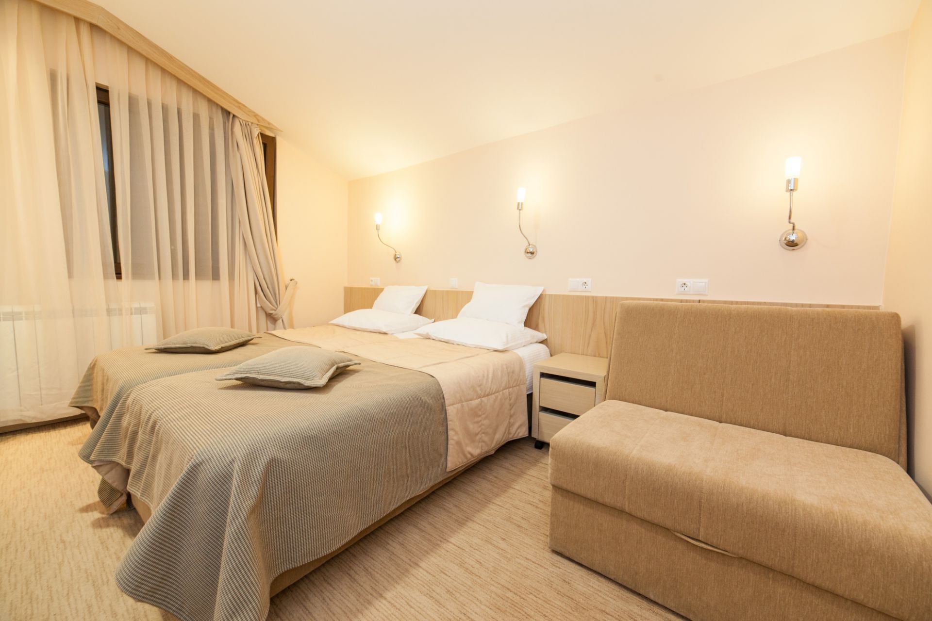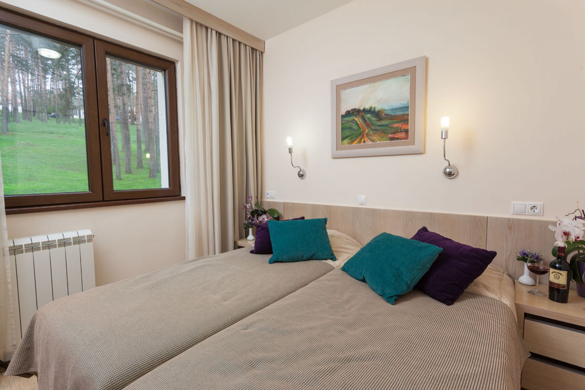 Odmaralište je otvorenog tipa za sve goste i pruža uslugu u rangu hotela sa četiri zvezdice – ima 24 sobe (telefon, kablovsku televiziju, bežični internet), 7 apartmana, ukupnog kapaciteta 87 ležaja.