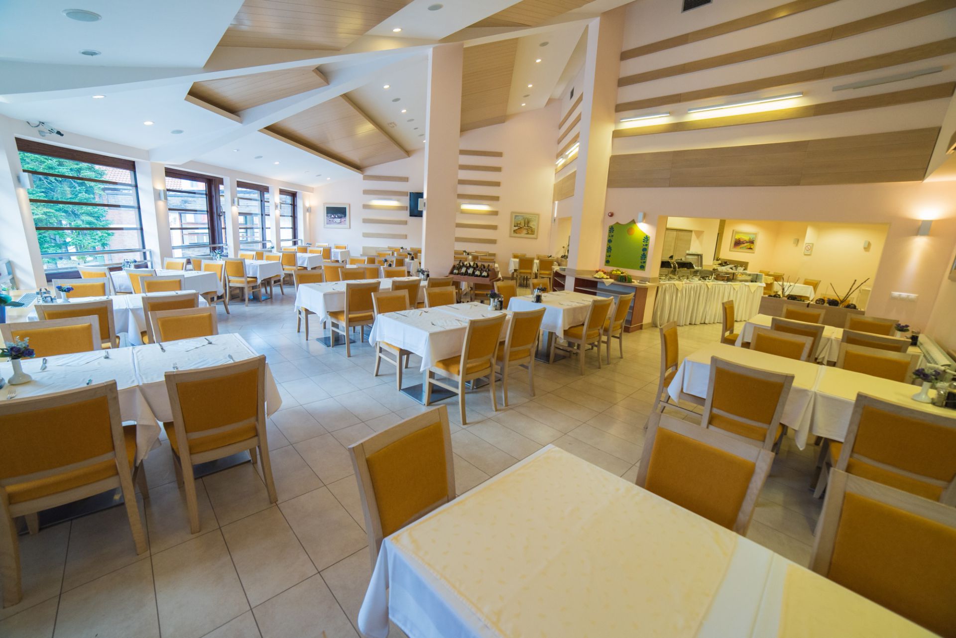 U sastavu odmarališta je i restoran sa letnjom baštom, kapaciteta 100 stolica, koji gostima nudi poznate specijalitete zlatiborske i internacionalne kuhinje.