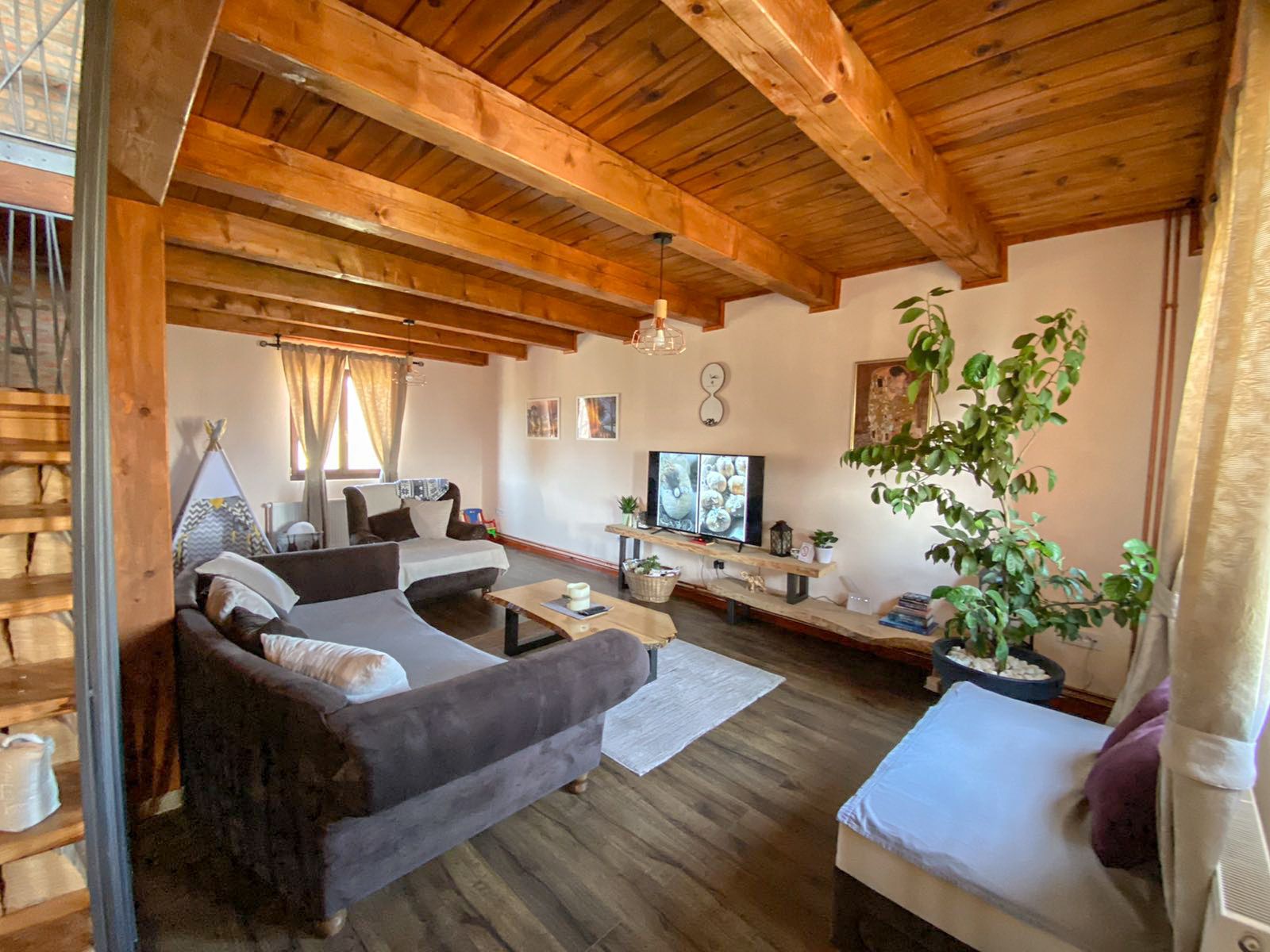 Rustic dream MIA je luksuzna kuća koja se nalazi u mirnom naselju Rudine, oko 3 kilometra od turističkog centra, okružena zalenilom i očaravajućim pogledom na vrhove Čigote. Lokacija je idealna jer pruža privatnost i mogućnost da se zaista odmorite i opustite. Kapacitet kuće je do 10 odraslih osoba, pogodna za porodice, okupljanje prijatelja, team building, manje proslave… Dvorište je opremljeno baštenskom garniturom za 10 osoba, roštilj, kotlić, trambolina, peščanik za decu…